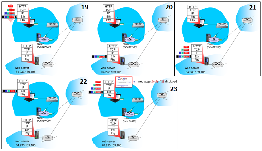 15) 클라이언트는 (dst IP address : 웹 서버 IP, MAC address: 첫 번째 라우터 MAC) TCP 소켓을 생성한다.