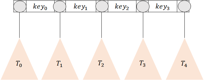$key_{i-1} < \{key_j \ | \ key_j \in T_{i} \} < key_{i}$