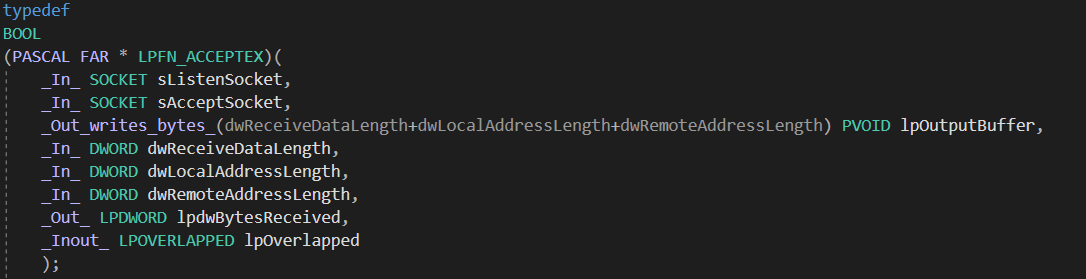 - 함수 포인터 타입 : LPFN_ACCEPTEX