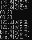 WriteLine("{0},{1}", 123, "최강한화");
