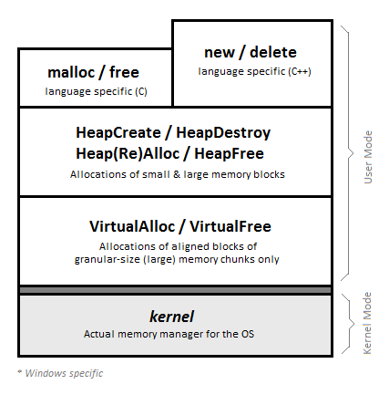 윈도우 OS에서 new/malloc는 HeapAlloc를 사용한다.