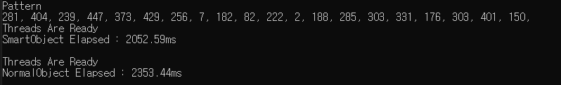 스레드를 여러개 생성하여 위 패턴을 바탕으로 동일한 작업을 수행한 시간을 합해준다. 이때 스레드를 만들고 모두 준비가 됐는지 알기 위해 이벤트 객체를 사용하여 동기화한다. 메모리 풀 사용과 사용하지 않음에 대해 한꺼번에 쓰레드를 사용하지 않고 차례차례 실행한다.