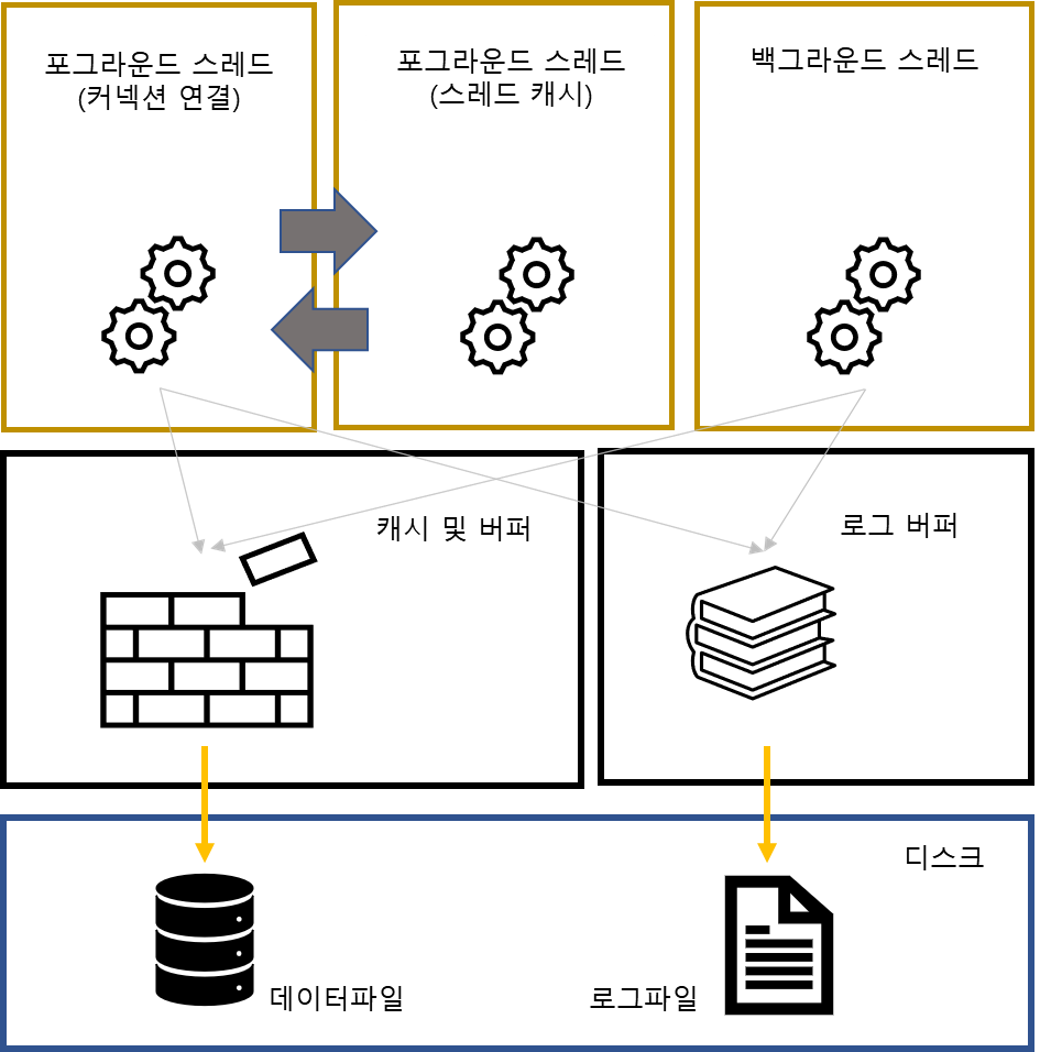 로그 스레드와 쓰기 스레드가 중요 역할을 담당한다.