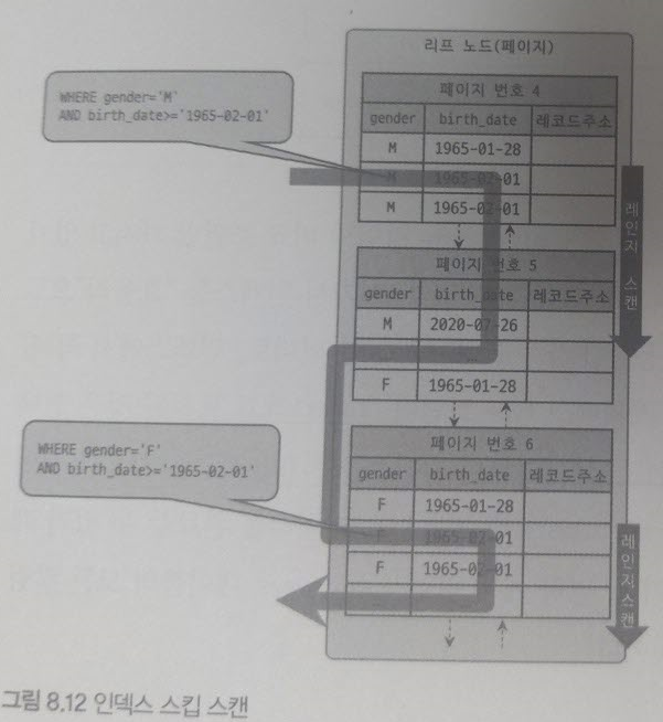 인덱스 스킵 스캔 기능을 사용하지 않는다면, 첫번째 쿼리는 풀 인덱스 스캔을 사용하게된다.