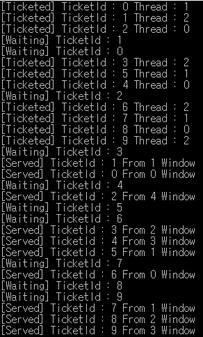 Log(Format("[Served] TicketId : {0} From {1} Window\n", request.GetIdx(), workerIdx));