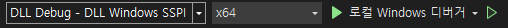 솔루션에서 빌드 설정의 경우 Lib Debug - DLL Windows SSPI 를 선택하고 빌드한다. 해당 선택은 정적 라이브러리를 빌드하며 동적 라이브러리의 경우 DLL Debug - DLL Windows SSPI를 선택한다.