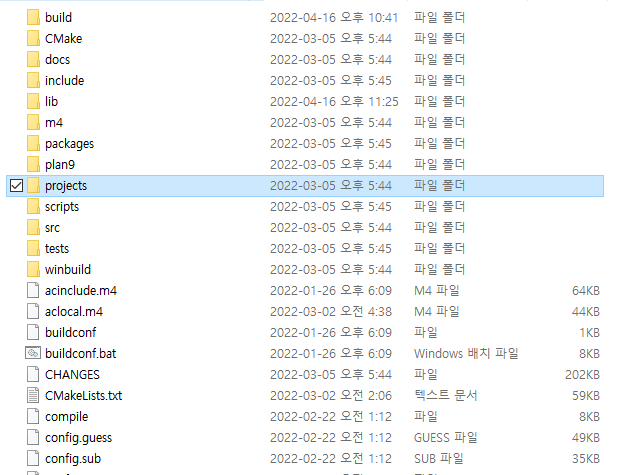 projects/Windows/VCXX 폴더들이 있는데 설치한 VisualStudio 버전에 따라 알맞은 툴 버전을 선택한다.