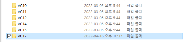 VS2022의 경우 VS17에 해당, VS2017/2019의 경우 VS15내의 솔루션을 선택한다.