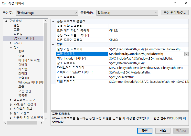 자신이 사용하는 프로젝트에서 libcurl을 사용할 경우 curl 프로젝트 구성 설정을 참고하여 설정하면 된다.