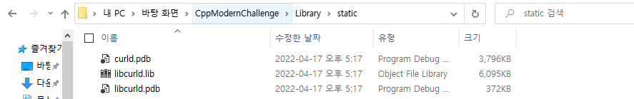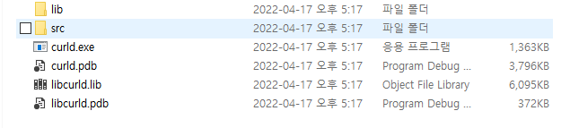 동적 라이브러리의 경우 출력 라이브러리 중 libcurl.dll을 실행 파일 경로에 복사해야 한다.