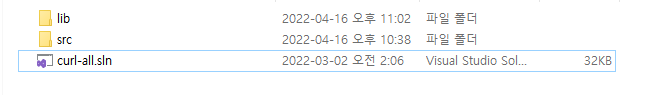 해당 페이지에서 압축 파일을 받아서 압축을 풀어 projects 폴더내의 curl-all.sln 프로젝트 솔루션을 찾는다.