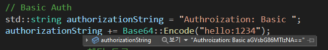 std::string authorizationString = "Authroization: Basic ";