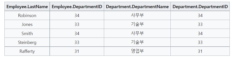 JOIN 키워드 뒤에 ON 절을 사용하여 결합 기준이되는 컬럼을 지정한다.