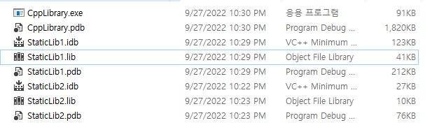 결국 정적 라이브러리의 함수를 사용할 경우 .lib에 있는 목적 코드 내용을 포함하여 그 실행 내용을 실행 파일 (.exe 혹은 실행 가능한 어떠한 파일)로 만들어 낸다.