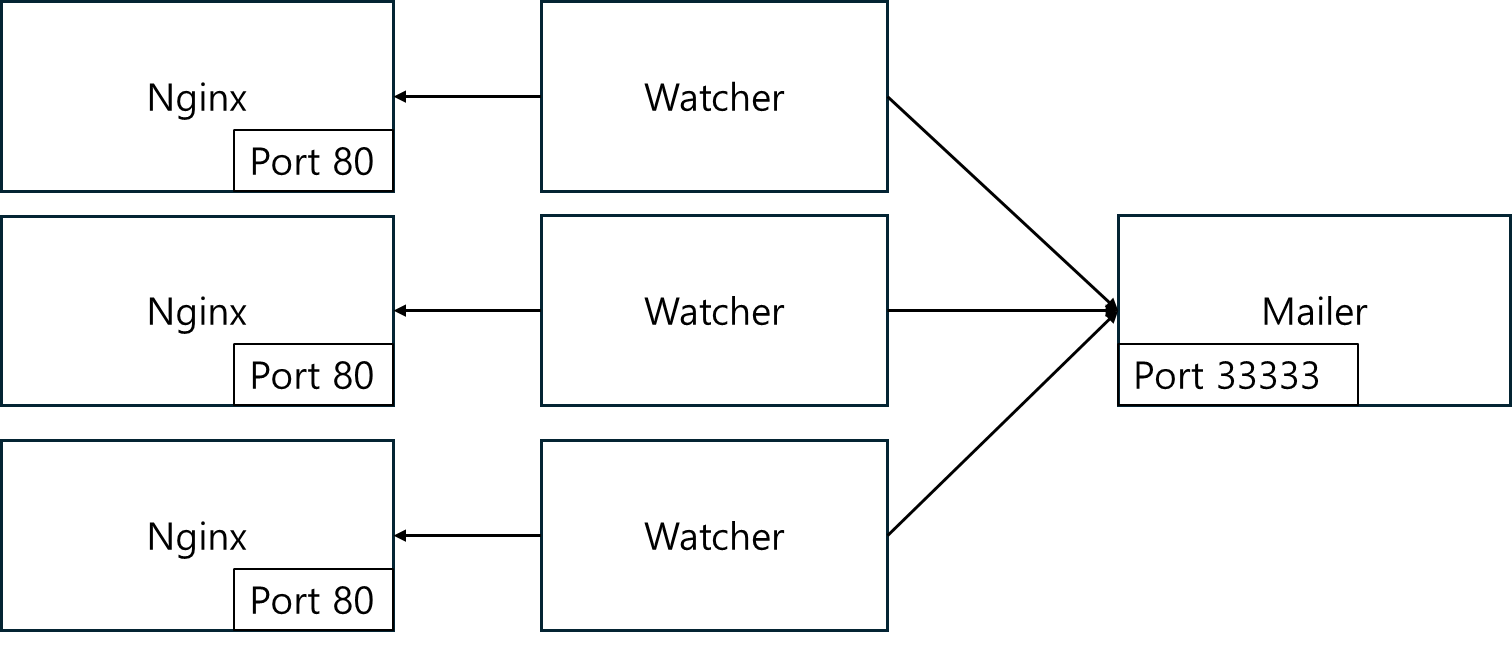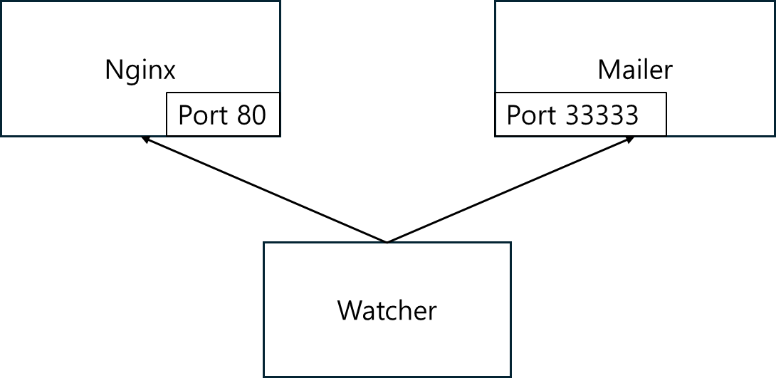웹 서버 nginx, 메일 전송 담당하는 mailer 그리고 이 두 어플리케이션을 모니터링하는 watcher 시스템을 구축해본다.