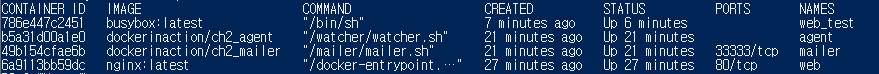 docker run -it --name agent --link web:insideweb --link mailer:insidemailer dockerinaction/ch2_agent