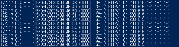 해당 컨테이너의 로그들을 출력한다. agent가 1초마다 테스트를 하고 있었으므로 다음 로그들이 보여진다.