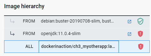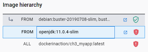 두 이미지는 모두 openjdk:11.0.4-jdk-slim image base로 사용하는데, ch3_myapp 이미지를 설치할 때 공통 부분을 설치하므로 ch3_myotherapp 이미지에서는 나머지 작은 부분만 설치되기 때문이다.