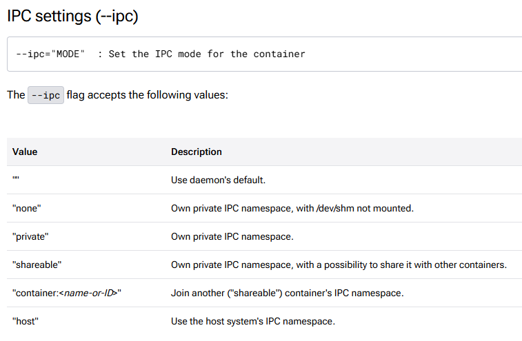 - --ipc=host 옵션의 경우 호스트와 공유 가능하다.