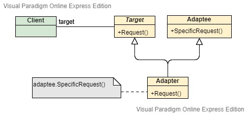 - Adapter는 Target의 서브 클래스이고 Adaptee의 서브 클래스는 아니게 된다.