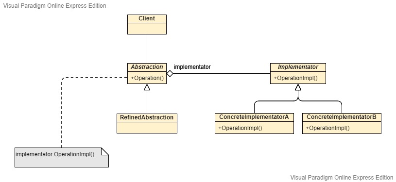 - Abstraction 클래스가 사용자 요청을 Implementor 객체에 전달