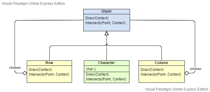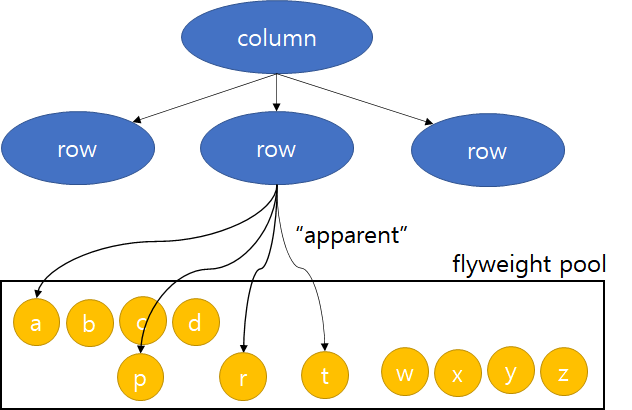 만약 문서 내용을 나타내는 문자 하나하나를 객체로 관리한다면, 굉장히 많은 객체를 문서마다 보유하고 이는 메모리 문제와 그래픽을 그리는 실행시간이 크게 지연될 것이다.