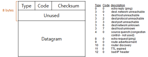 - ICMP 프로토콜 헤더는 type, code, checksum로 이루어져 IP 데이터그램의 첫 8 바이트를 차지