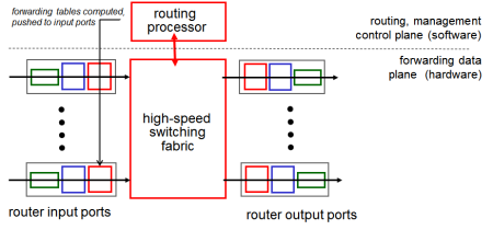 - 포워딩: 라우터의 입력 버퍼에서 출력 버퍼까지 패킷을 옮기는 것.