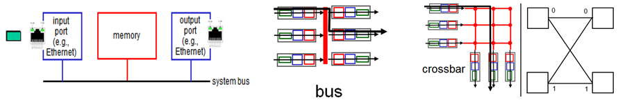 - switching fabric: 입력 버퍼로 부터 적절한 출력 버퍼로 데이터를 보냄