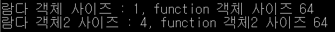 printf("람다 객체 사이즈 : %lld, function 객체 사이즈 %lld\n", sizeof(equal), sizeof(equal_func));