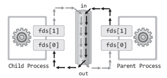 한 파이프를 통해 양쪽에서 데이터를 주고 받을 수 있으며, 각 파일 디스크립터를 입구와 출구로 사용하기만 하면된다.