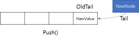 Push() : 현재 Tail의 노드(OldTail)에 데이터를 삽입하고 새로운 노드를 Tail로 만들어준다. 새로운 노드에 데이터를 할당하는 것이 아니다.